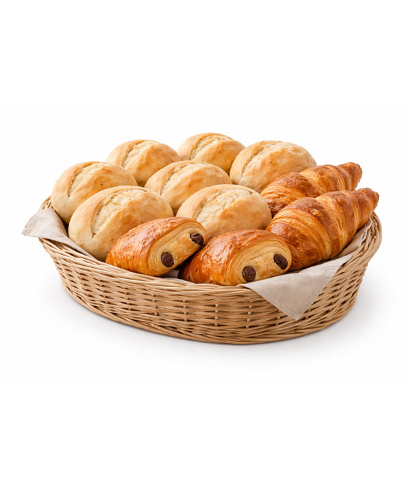 8 pistolets, 2 croissants, 2 chocolate rolls